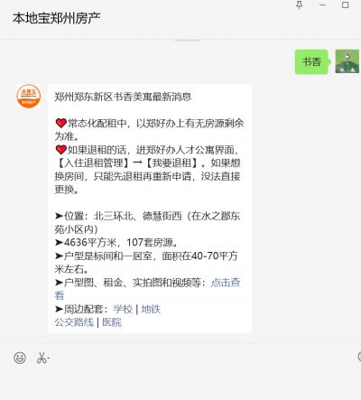 温馨提示:微信搜索公众号【本地宝郑州房产】,关注后回复【书香】,可获取最新房源申请时间以及房源信息、申请方式和条件、租金、周边配套等信息!还可加入交流群。