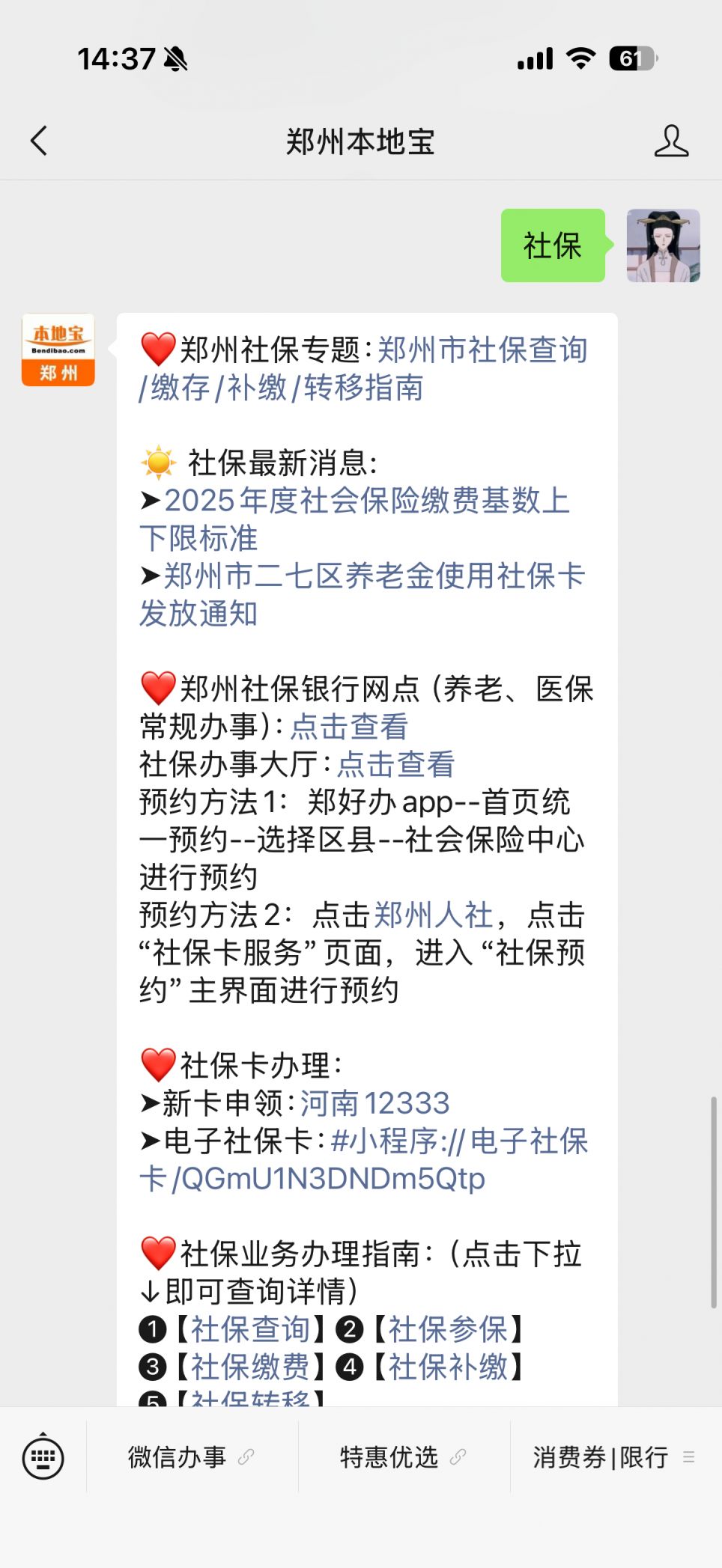 温馨提示:微信搜索公众号【郑州本地宝】,关注后回复【社保】,可获取郑州社保办事指南,包括最新缴费基数、社保参保缴费转移指南、社保卡办理指南、社保机构位置预约等(持续更新)